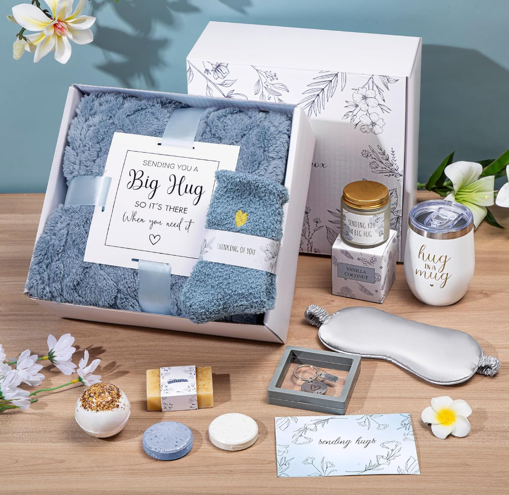 • Ready to Gift with Elegant Presentation: This gift box for women arrives beautifully arranged with a heartfelt greeting card, no additional wrapping needed, each detail from blanket to the bath products is selected to provide comfort, encouragement, support, and emotional well-being, perfect as a bereavement gift, get well soon gift, thinking of you gift, self care gifts, sympathy gift , remembrance gifts, grief gifts, making it a meaningful hug in a box that shows you care even from a distance